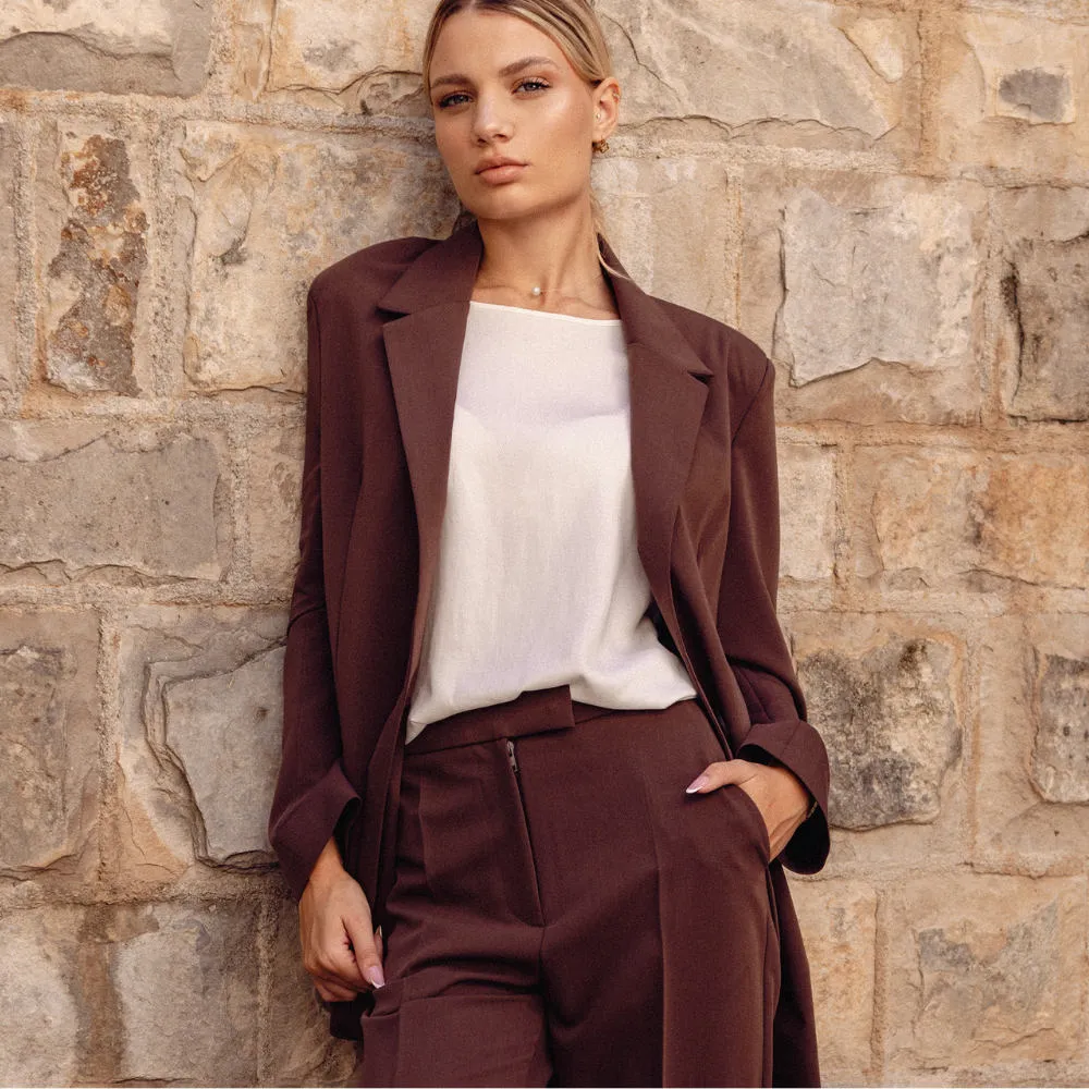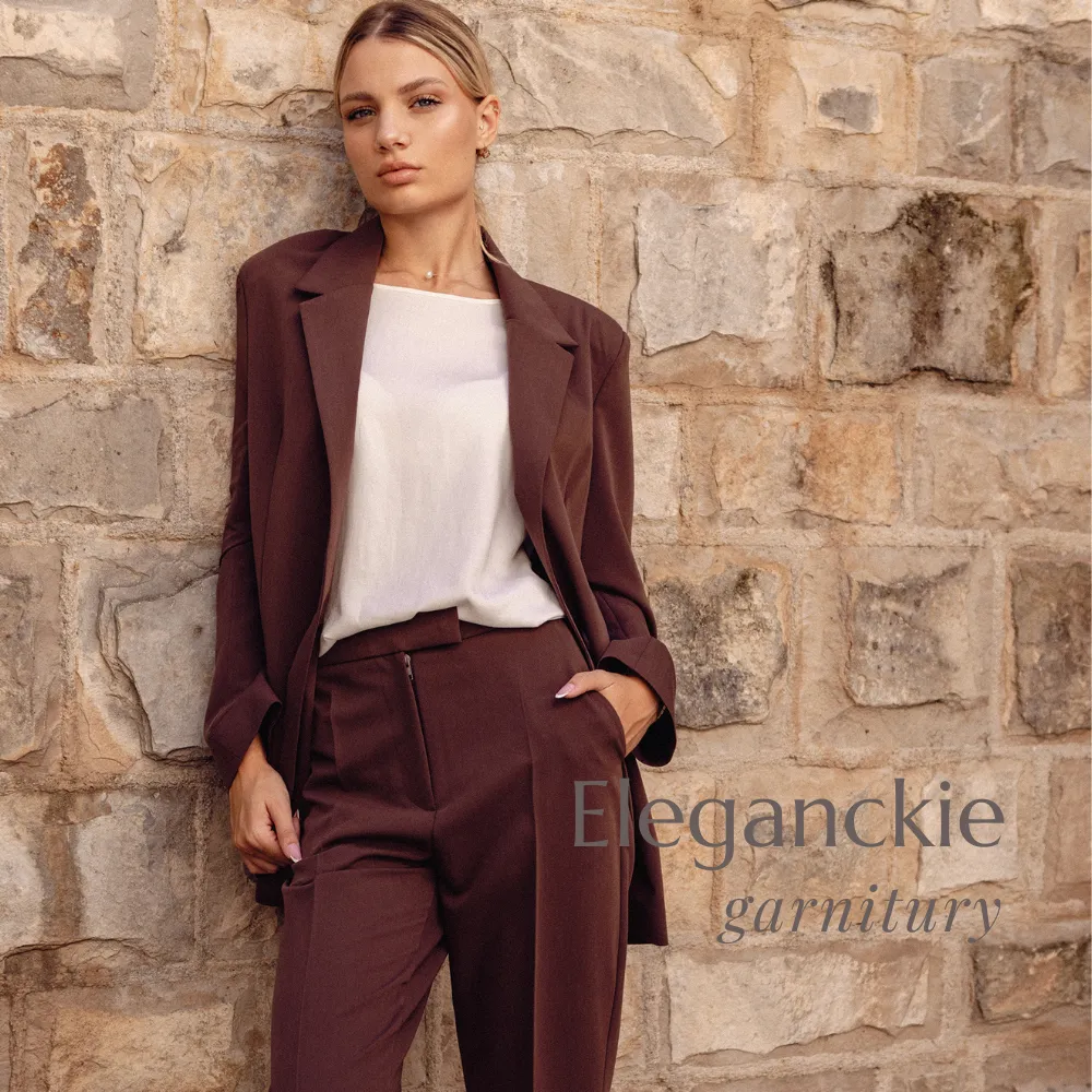 Elegancki krótki żakiet damski czekoladowy z wiskozą
