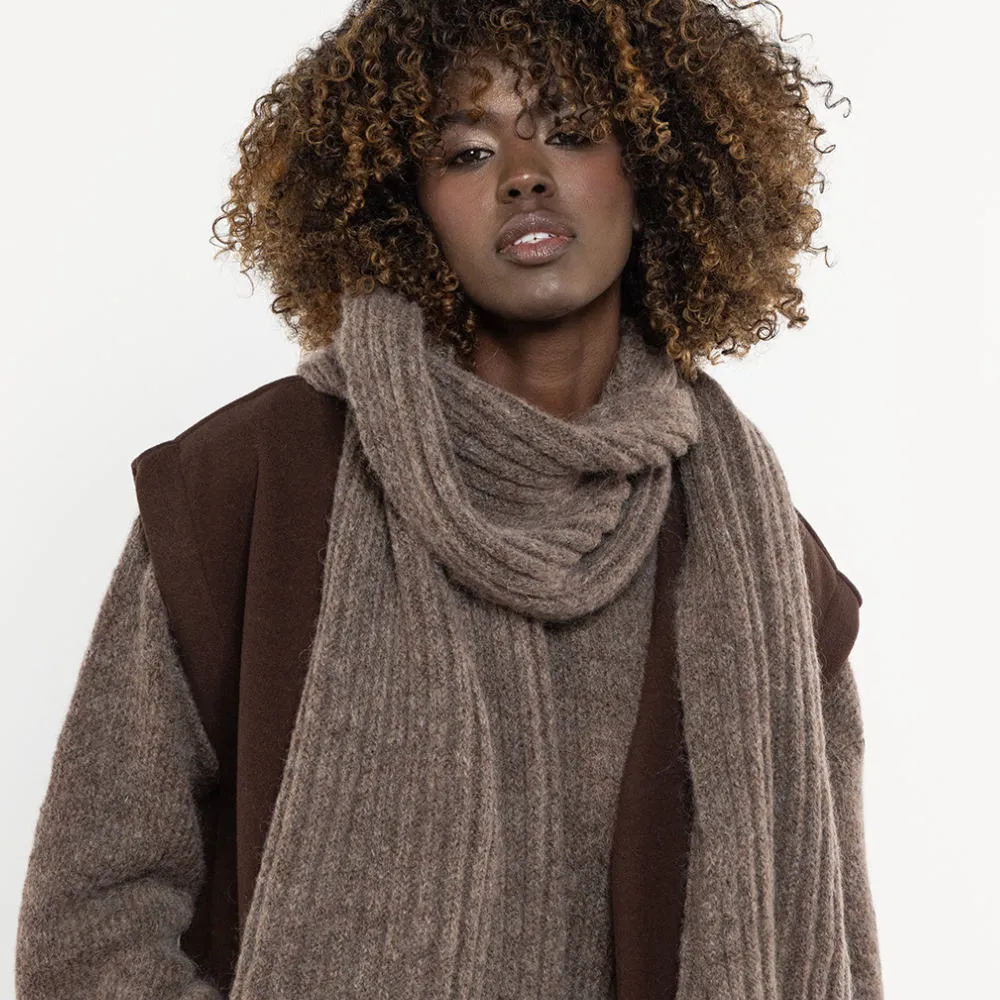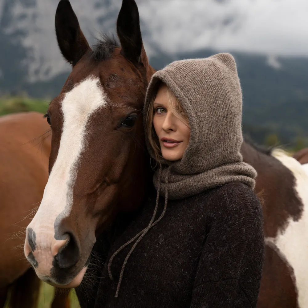 Ciepły sweter z wełną i kid moherem – czekoladowy