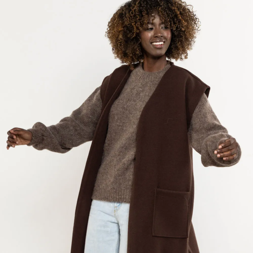 Elegancka czekoladowa kamizelka damska z flauszu na jesień