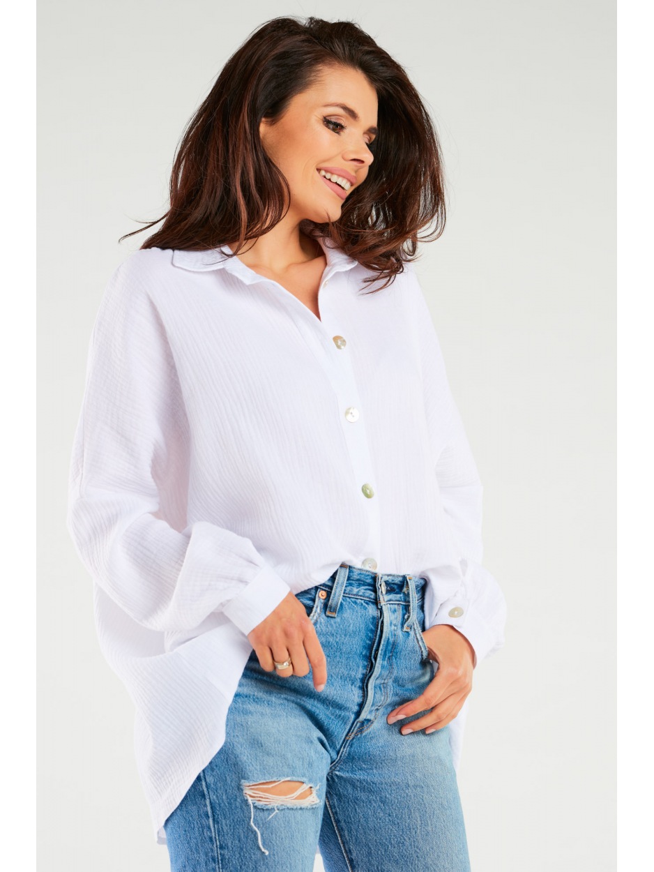 Biała oversizowa koszula z muślinu to połączenie klasyki, wygody i lekkości. Zamów teraz, by cieszyć się ponadczasowym stylem na co dzień!