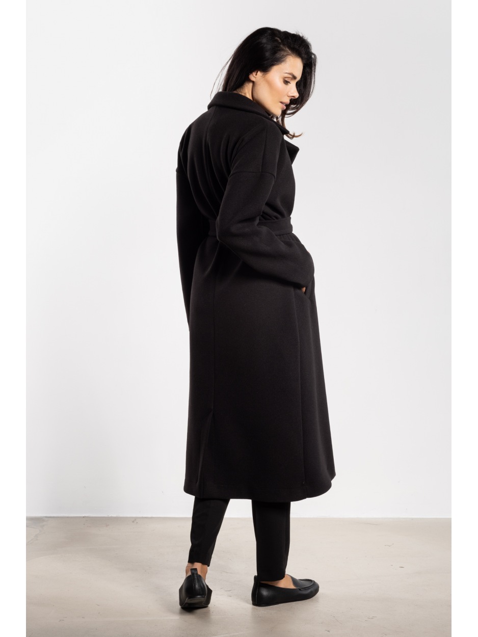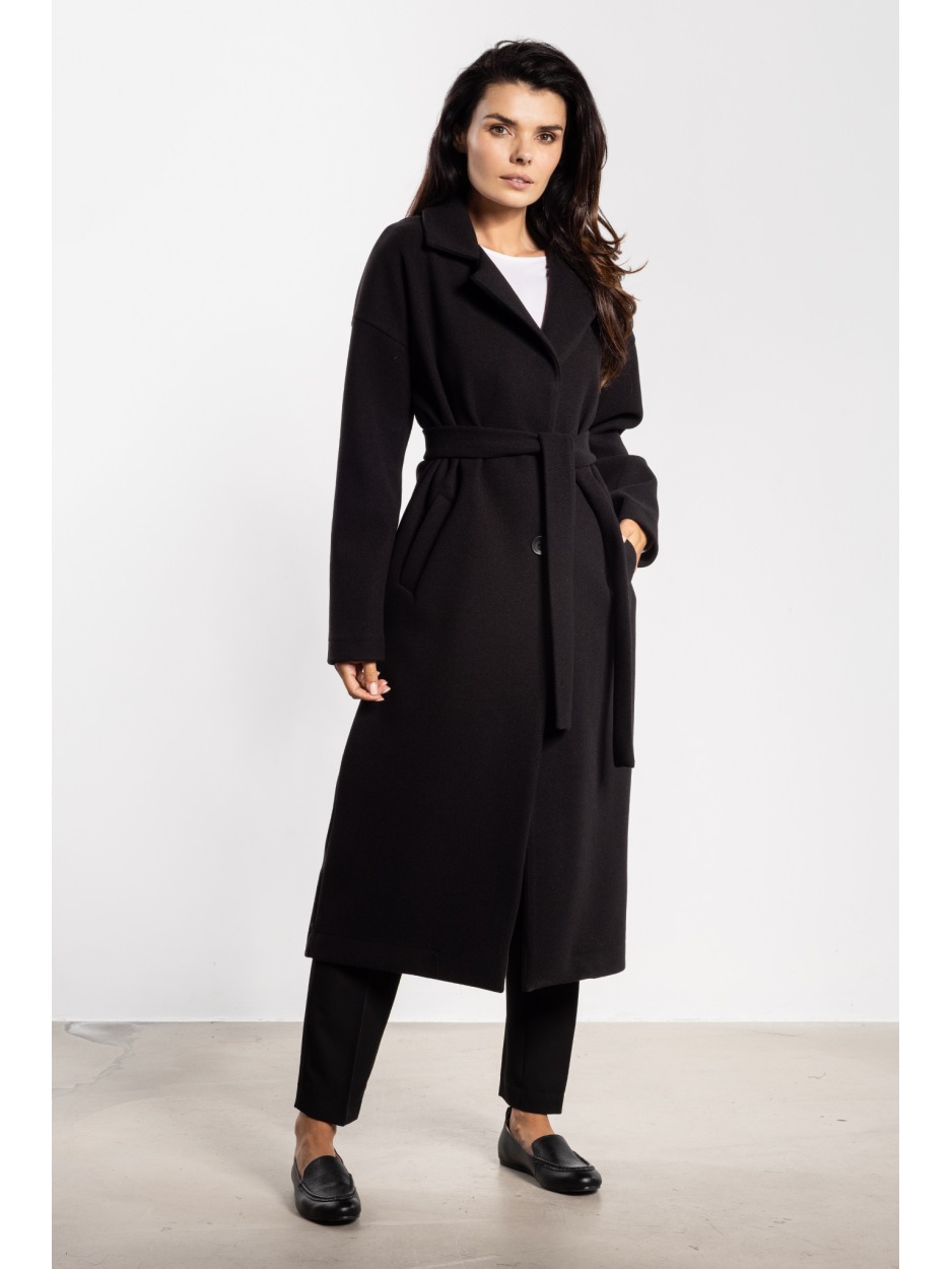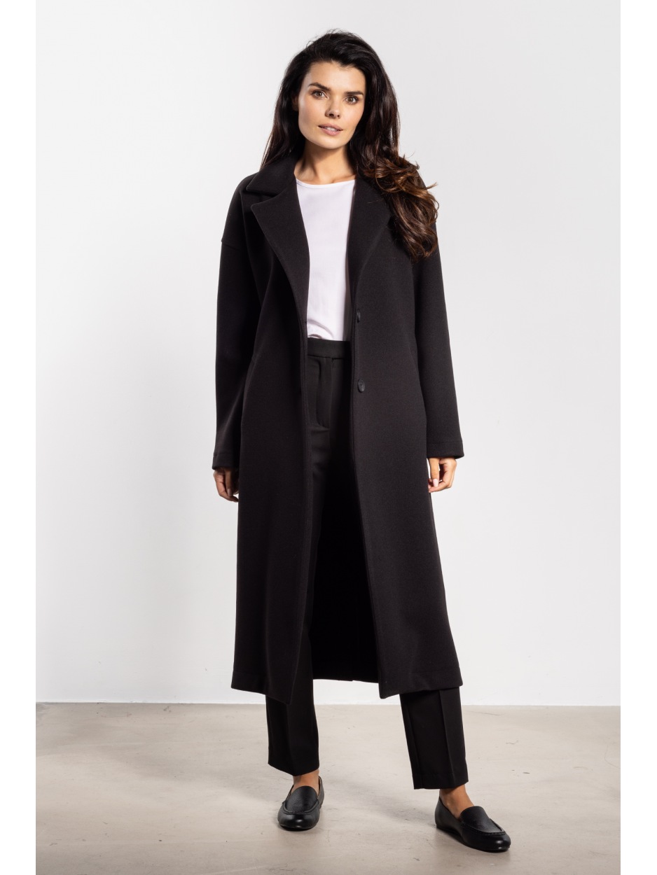 Flausz to tkanina, która zapewnia ciepło w chłodne dni, a jednocześnie jest lekka i miękka. Dzięki klasycznemu fasonowi i uniwersalnej czerni płaszcz będzie ponadczasowym elementem garderoby, który posłuży przez lata.