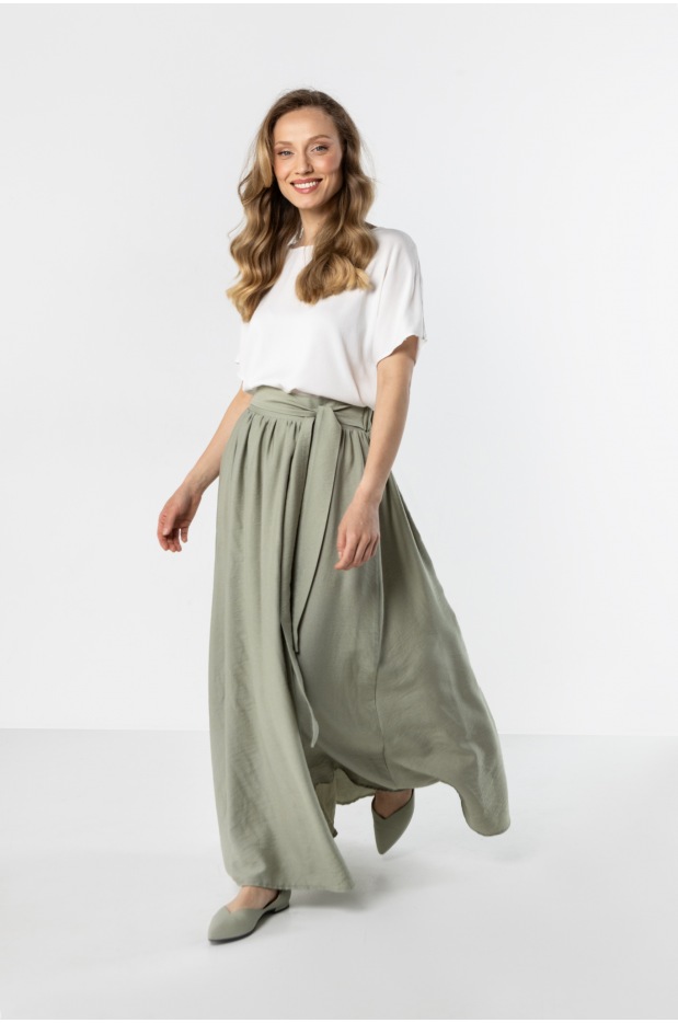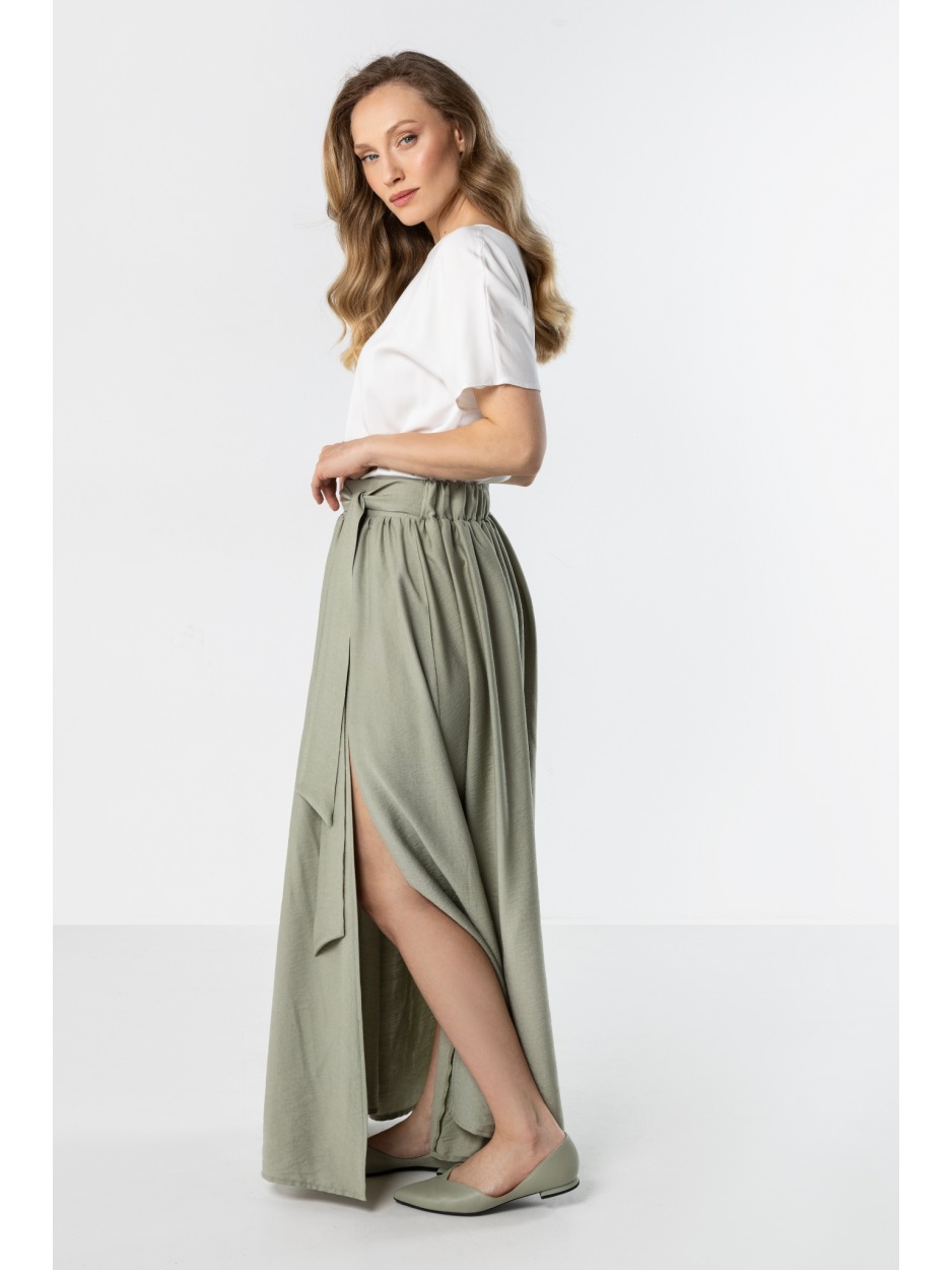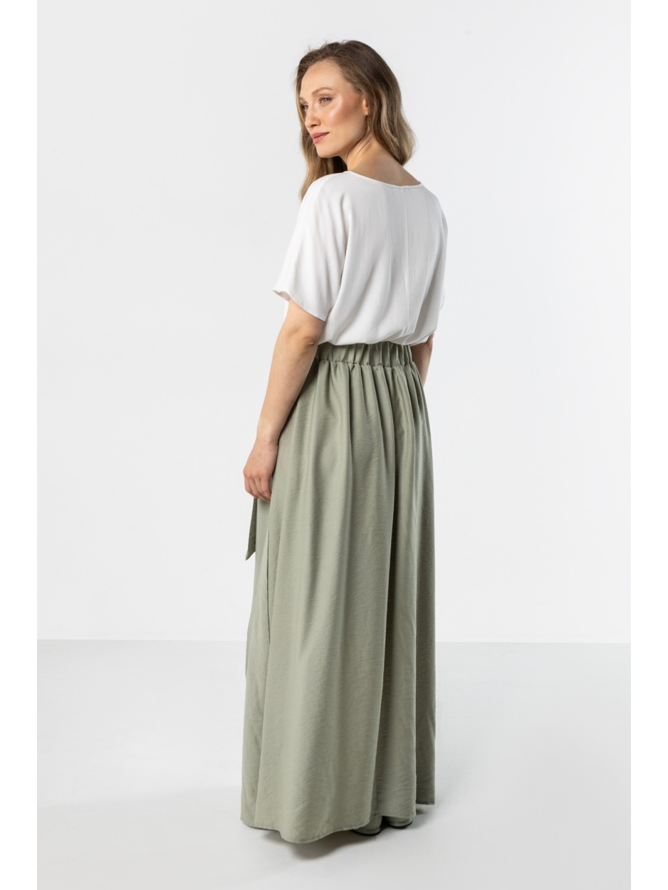 Jeśli spodobał Ci się produkt Szałwiowa spódnica maxi z rozcięciem, wiązaniem w talii i gumką z tyłu sprawdź także