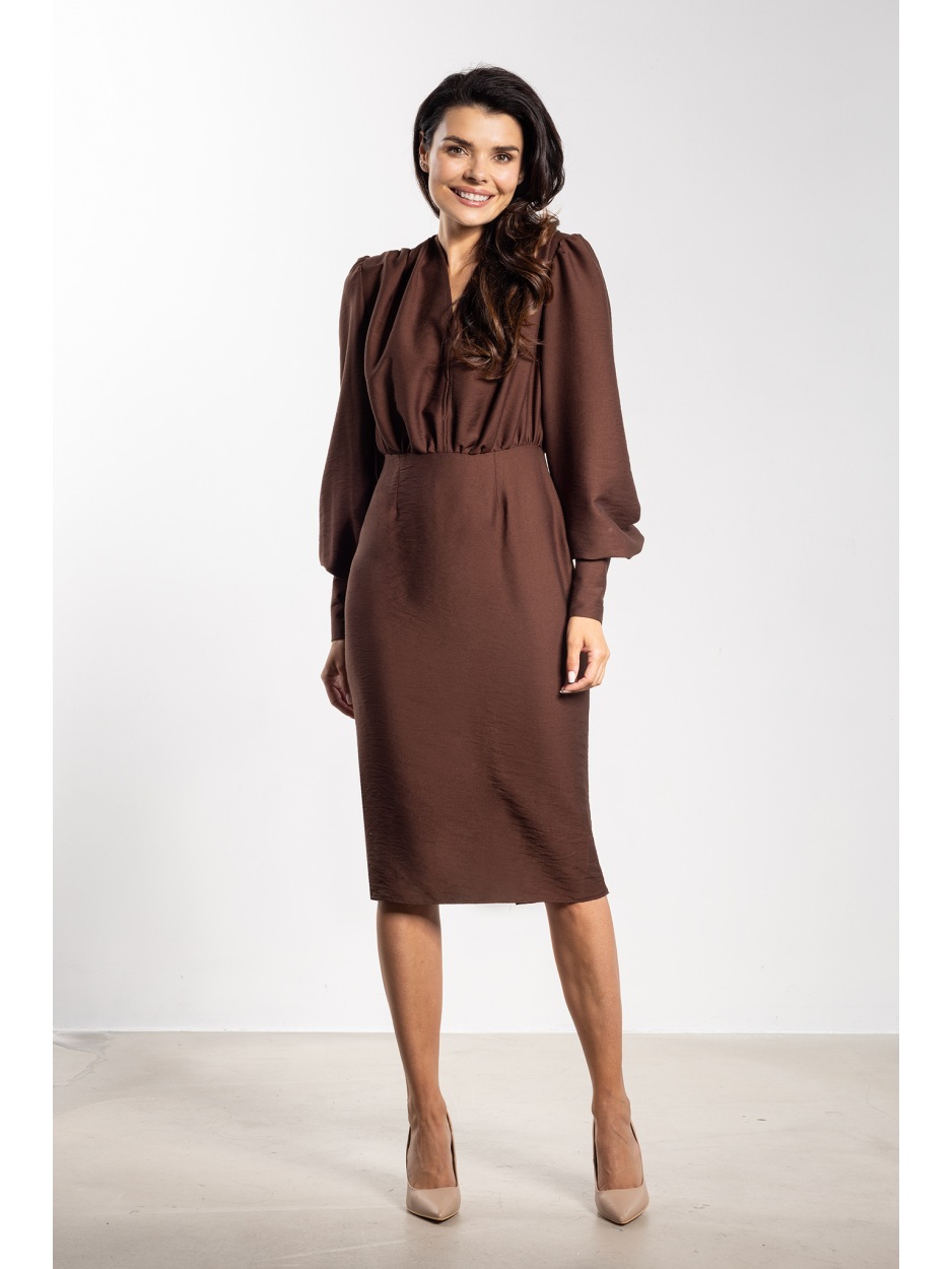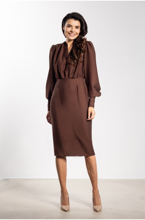 Postaw na klasyczną elegancję – zamów już teraz sukienkę midi w kolorze czekoladowym i zachwycaj stylem na każdą okazję!