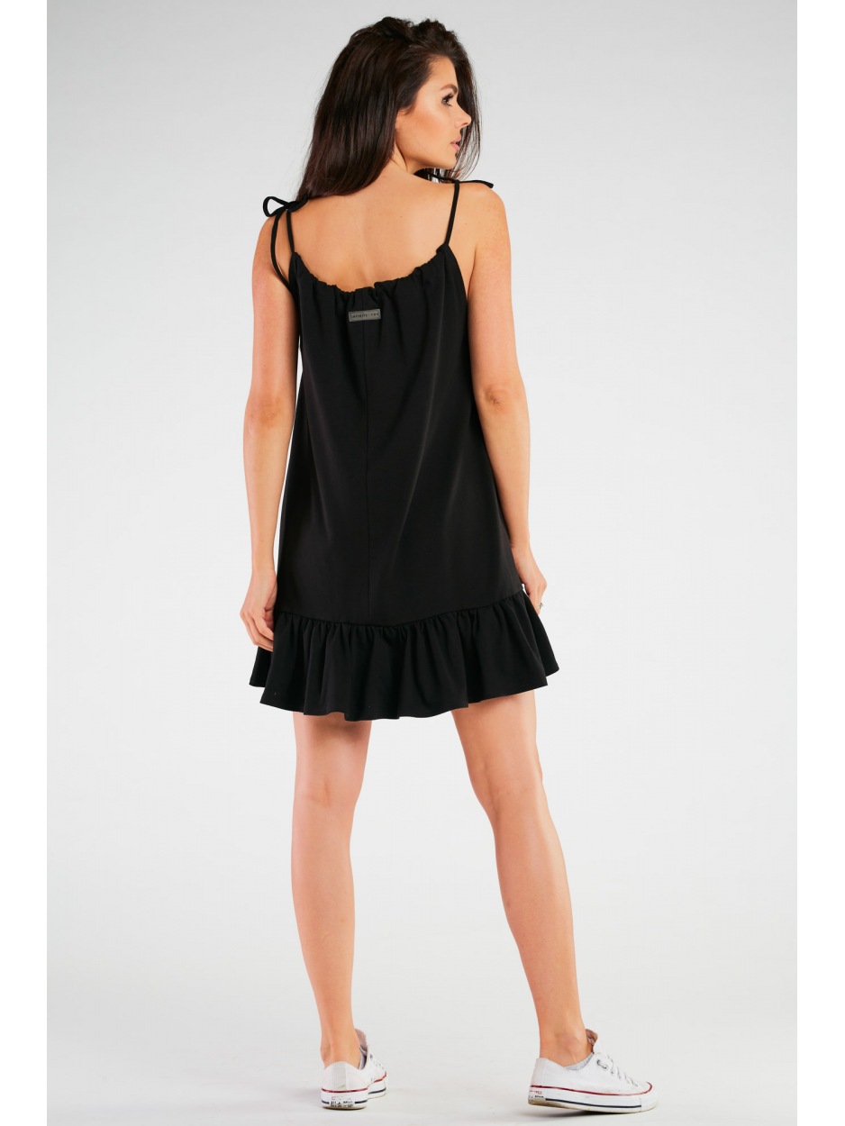 Bawełniana Sukienka Trapezowa na Ramiączkach – Klasyczna Czern w Wyjątkowym Stylu