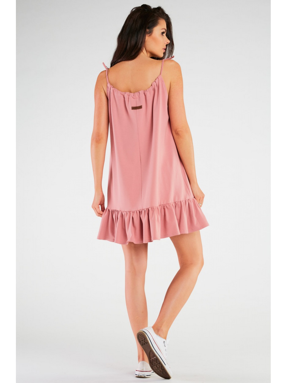 Bawełniana Sukienka Trapezowa na Ramiączkach – Delikatny Róż w Letniej Stylizacji