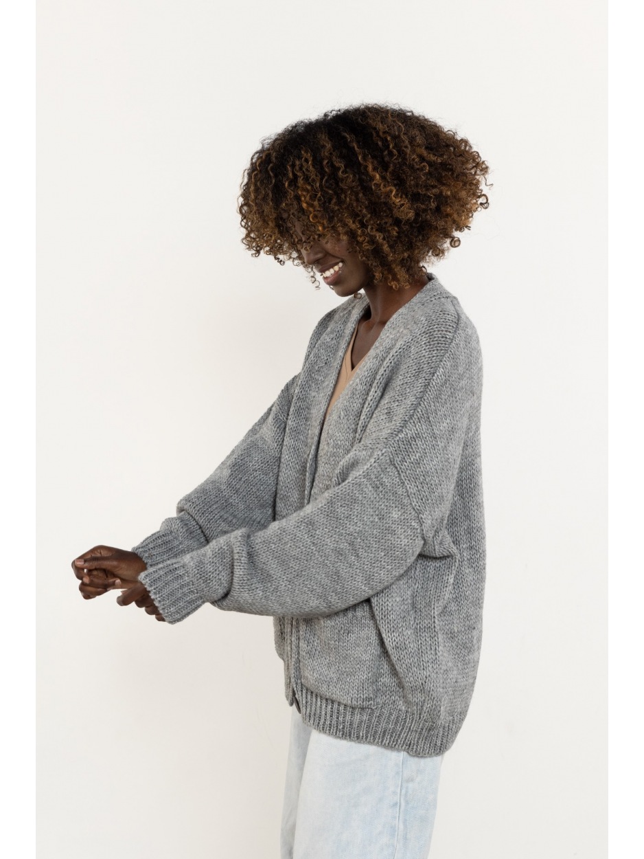 - Szary melanż to idealny kolor bazowy – ten szary kardigan damski łatwo łączy się z czernią, bielą, beżami i jeansem.